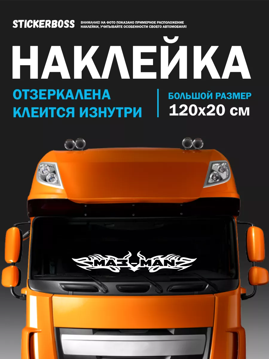 Наши большие наклейки на лобовое стекло фуры, шириной 120 см, идеально подходят для владельцев грузовиков, желающих подчеркнуть бренд своего автомобиля