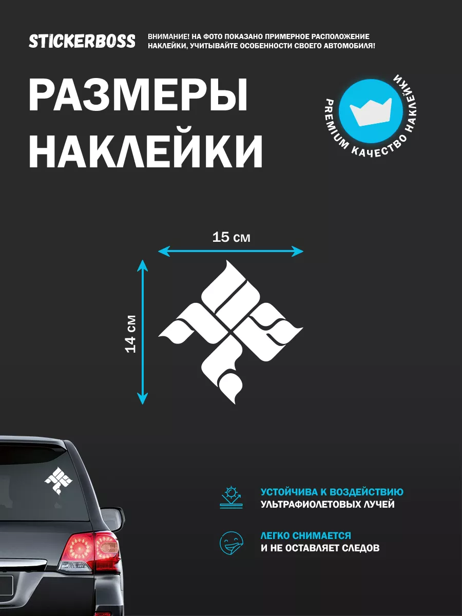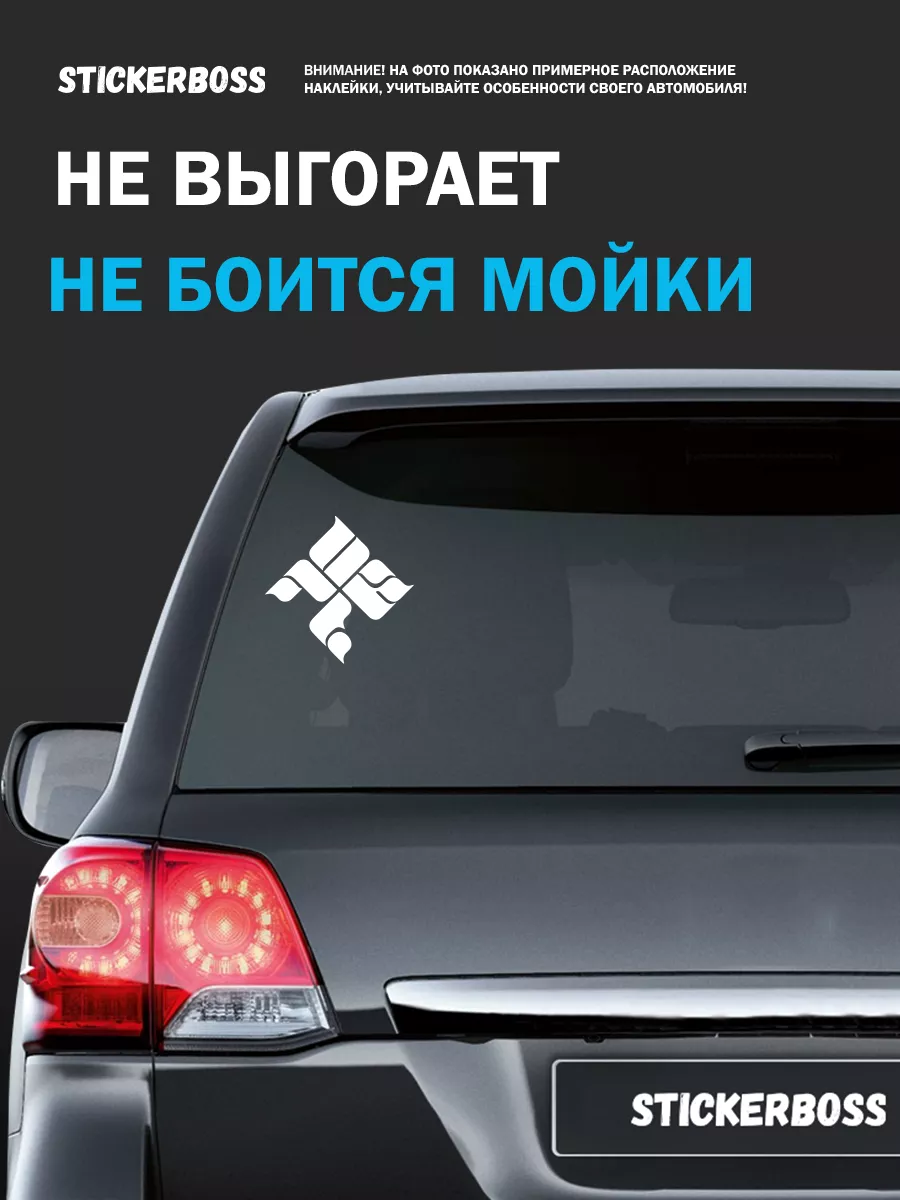 Наклейка предназначена для внешнего нанесения на стекло и кузов автомобиля.