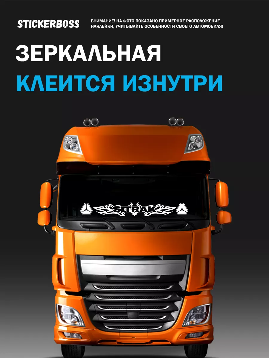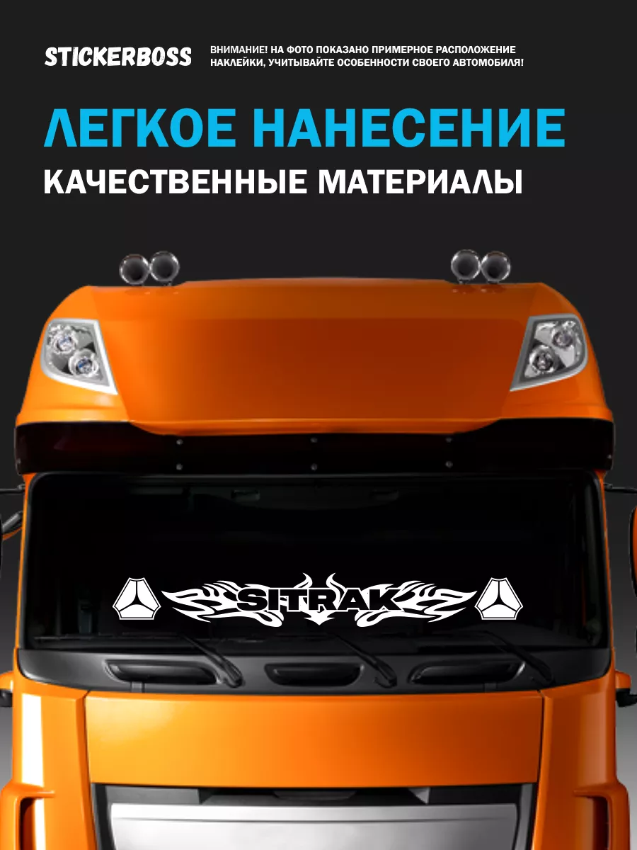 Эта наклейка предназначена для грузовых автомобилей и служит способом подчеркнуть бренд на дороге. Наклейка SITRAK узор рассчитана на лобовое стекло фуры и имеет заметную графику. Ширина изделия составляет 120 см, что обеспечивает заметный эффект на большом стекле. Изготовлена на самоклеющейся виниловой пленке ПВХ Oracal белого цвета, устойчива к выцветанию и погодным условиям.