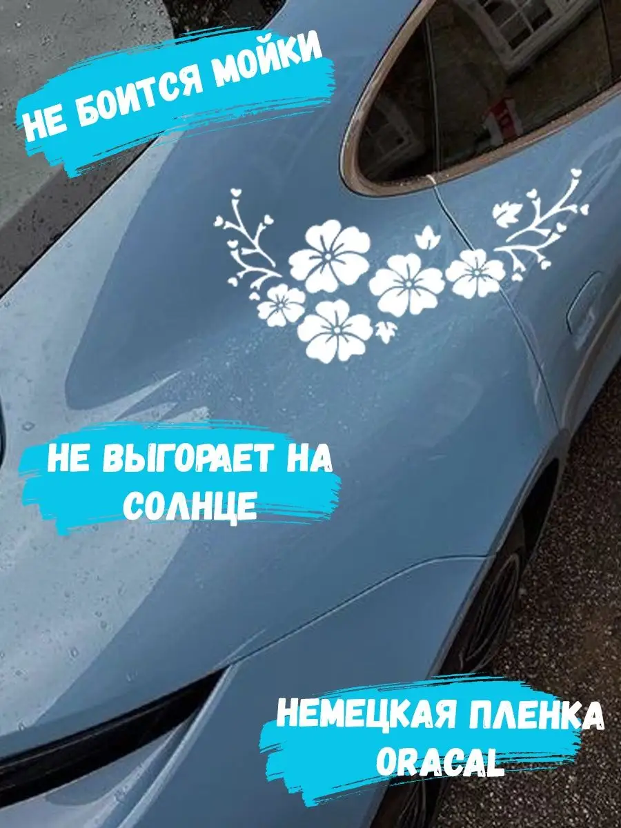 Декоративная наклейка предназначена для внешних стекол и кузова автомобиля, добавляя стильный акцент благодаря рисунку Цветы Орнамент.