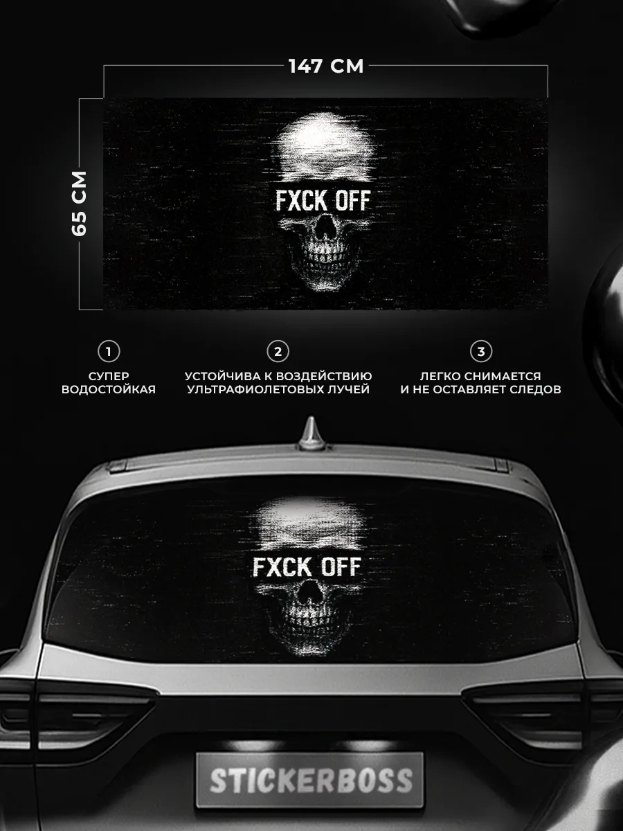 Перед наклейкой очистите поверхность заднего стекла от грязи и пыли. Отделите защитную плёнку и аккуратно разместите изображение, разравнивая пузырьки воздуха. При необходимости можно подрезать по контуру. Наклейку можно снять без повреждений поверхности.