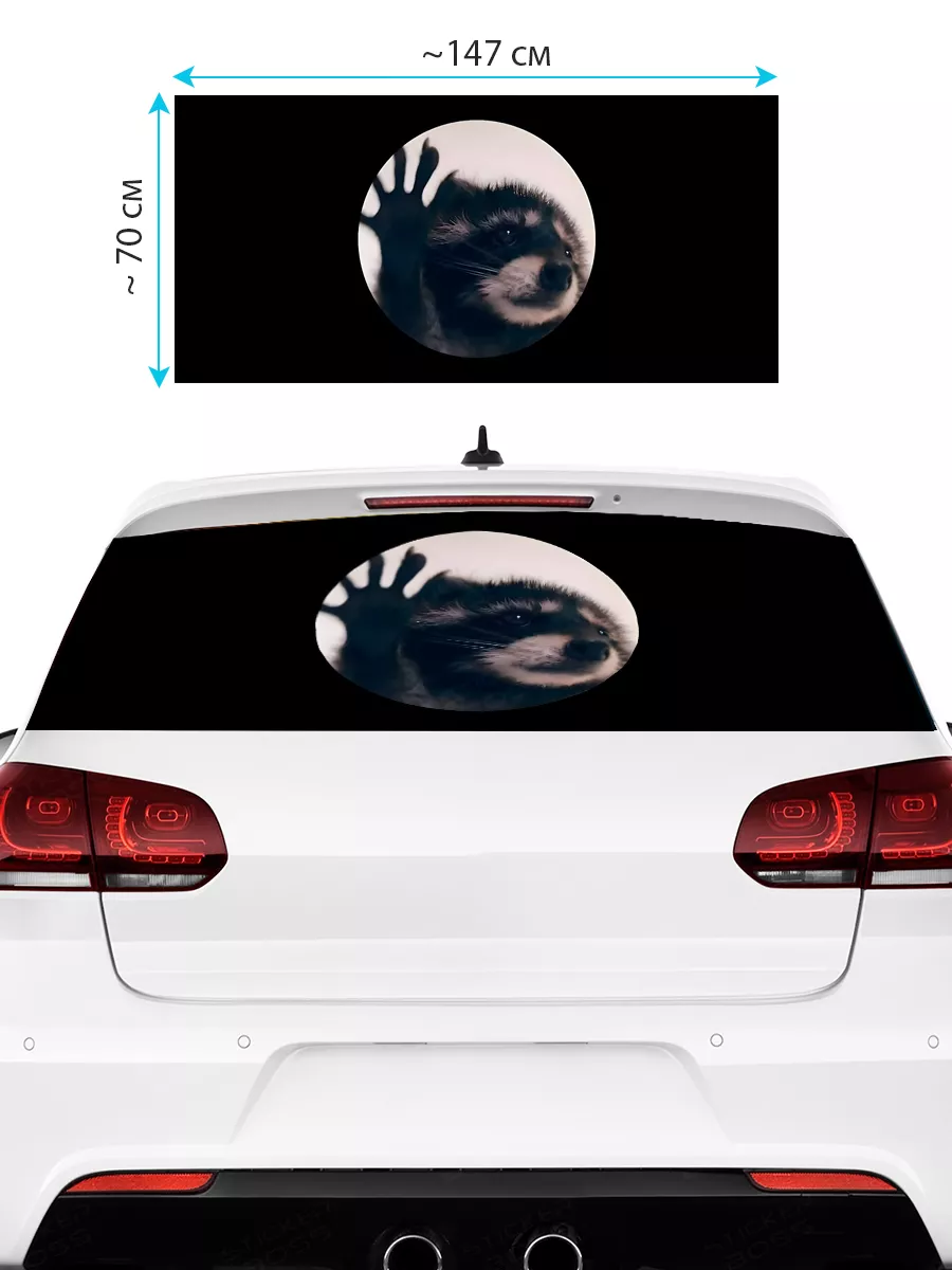 Применяется как декоративная наклейка на заднее стекло автомобиля. Можно подрезать по размеру стекла, чтобы рисунок гармонично вписывался в обзор и стиль машины.