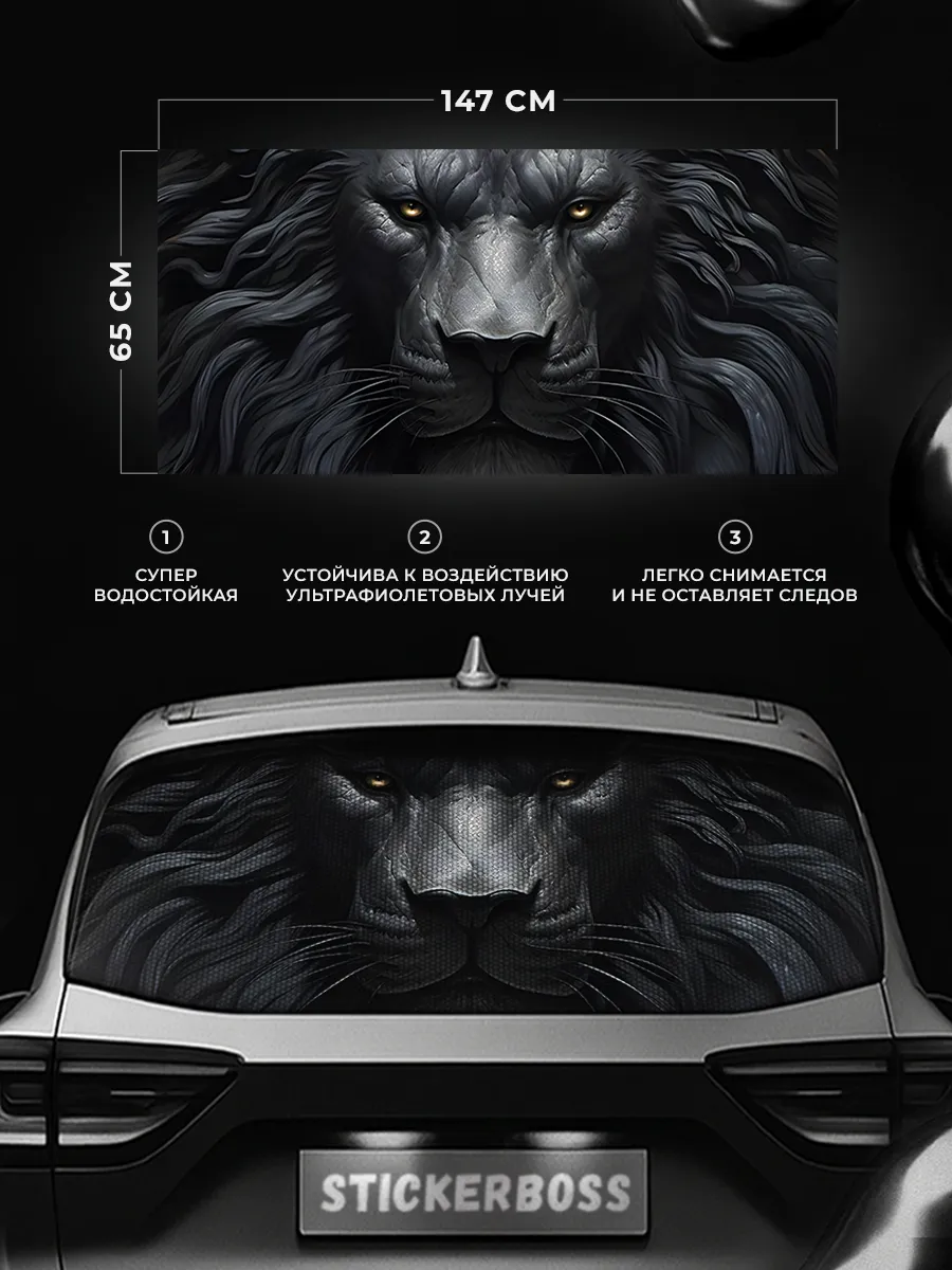 Эта наклейка предназначена для декоративного оформления заднего стекла автомобиля; размер 150x70 см делает её заметной на большинстве седанов, хэтчбеков и универсалов. Перфорированная самоклеящаяся виниловая пленка обеспечивает прочное прилипание к поверхности, устойчивость к мытью и погодным условиям, а также возможность легкого снятия без следов.