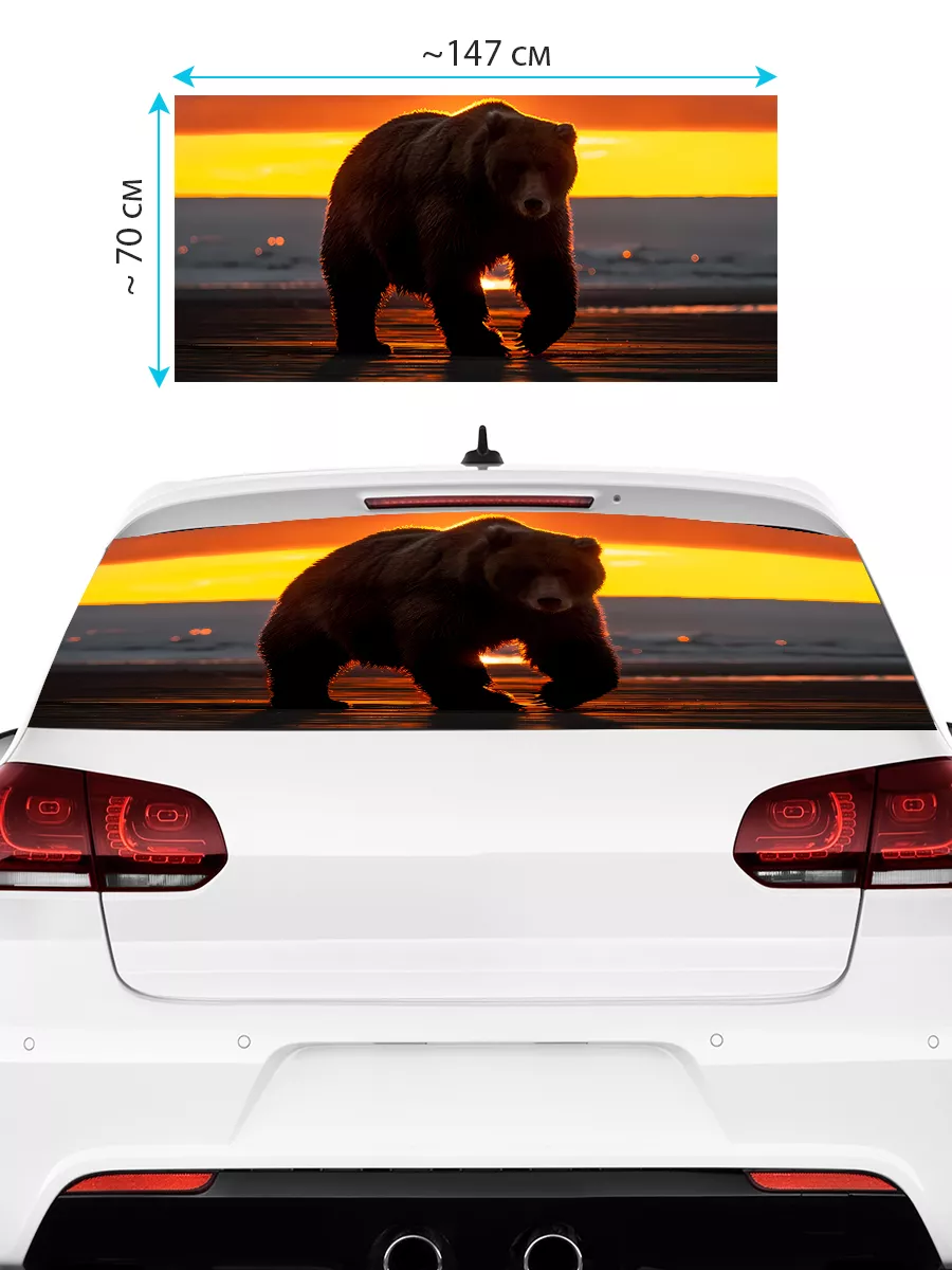 Преобразите внешний вид вашего авто с помощью большой наклейки – сетки на заднее стекло с изображением бурого медведя