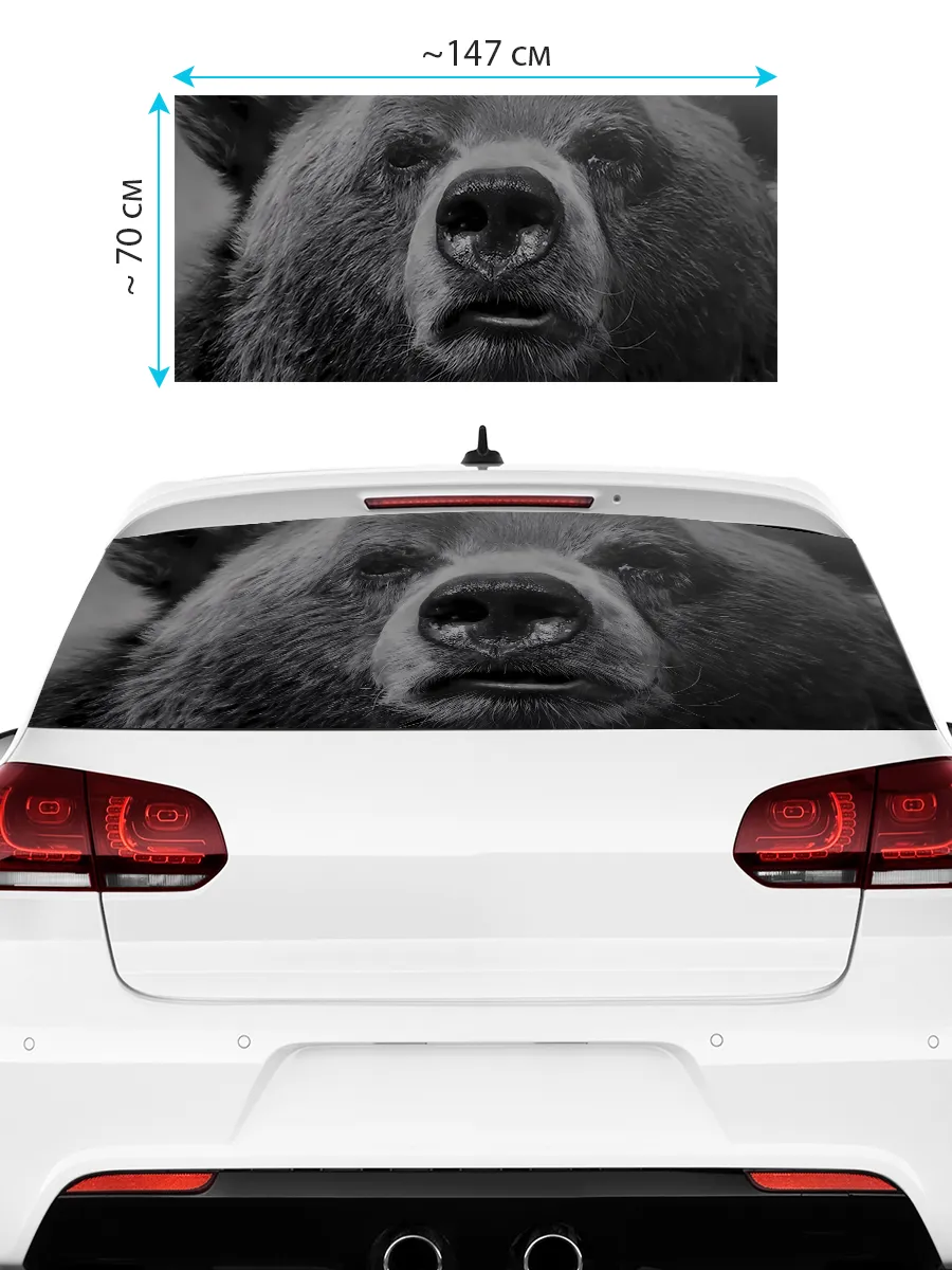 Преобразите внешний вид вашего авто с помощью большой наклейки – сетки на заднее стекло с изображением бурого медведя