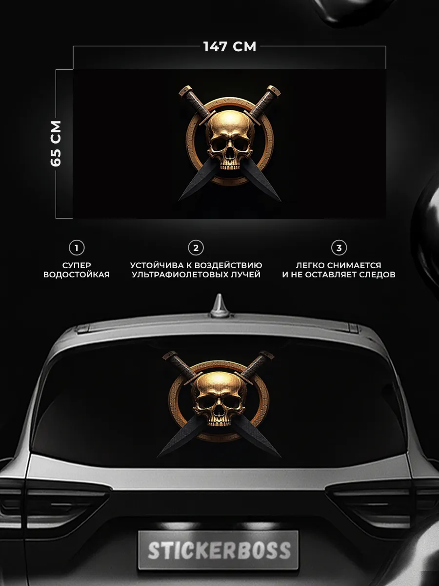 Размер стикера 150х70 см, универсальный и подходит для большинства автомобилей: седаны, хэтчбеки и универсалы. При необходимости можно подрезать лист под нужный размер. Товар упаковывается в защитную тубу для сохранности при доставке. В коллекции Stickerboss представлены множество вариантов дизайна — надписи, герои фильмов и игр, животные, аниме-стиль, флаги, города и многое другое. Наклейка имеет перфорацию по всей площади, что обеспечивает достойный внешний вид при сохранении приватности за стеклом.