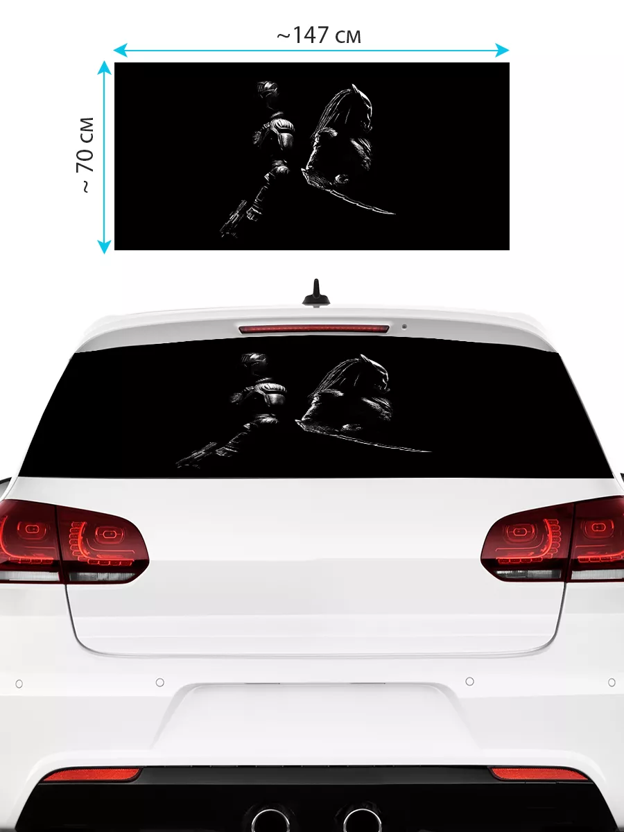 Преобразите внешний вид вашего автомобиля с помощью большой наклейки - сетки на заднее стекло с изображением самурая! Этот воин в японском стиле добавит вашему транспортному средству уникальности и выразительности