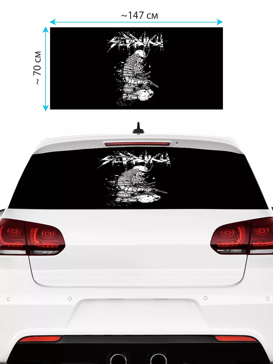 Преобразите внешний вид вашего автомобиля с помощью большой наклейки - сетки на заднее стекло с изображением самурая! Этот воин в японском стиле добавит вашему транспортному средству уникальности и выразительности