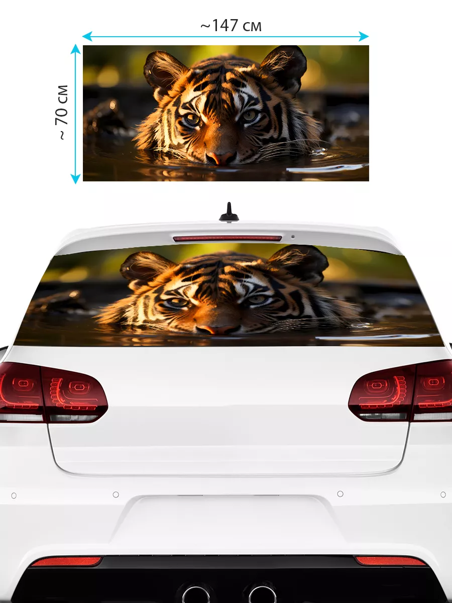 Наклейка на заднее стекло тигр 150x70 см — крупная декоративная перфорированная наклейка на самоклеящейся виниловой пленке ПВХ, которая преобразит внешний вид автомобиля и добавит индивидуальности.