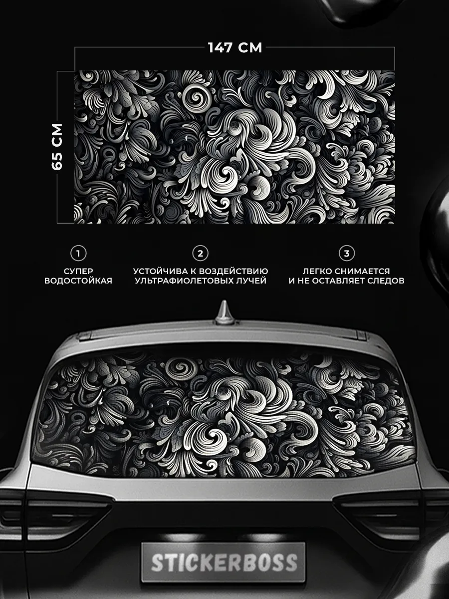 Эта наклейка предназначена для украшения заднего стекла автомобиля и обеспечивает приватность за счет перфорированного дизайна. Размер 150х70 см и универсальная посадка позволяют использовать её на большинстве автомобилей.