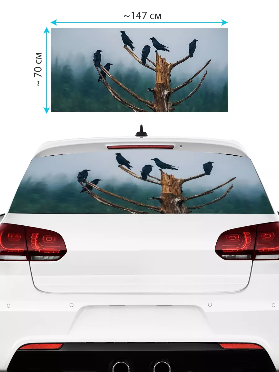 Большая декоративная наклейка на заднее стекло автомобиля размером 150×70 см обеспечивает стиль и приватность. Наклейка выполнена на основе перфорированной самоклеящейся виниловой пленки ПВХ и подходит для большинства кузовов. Дизайн коллекций варьируется от надписей и героев до животных и городских мотивов.