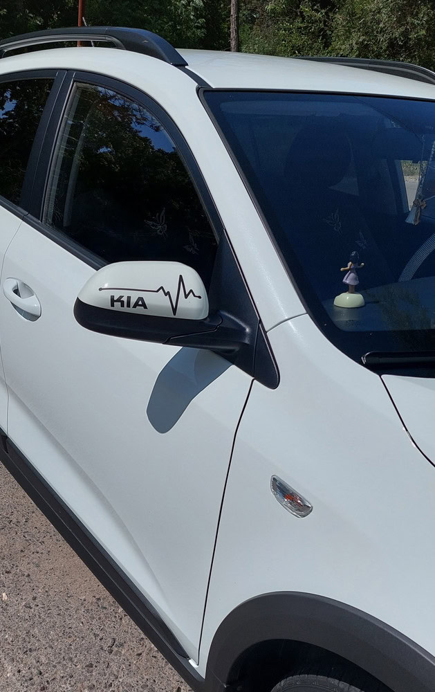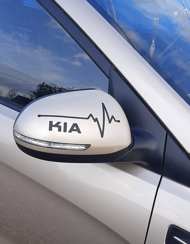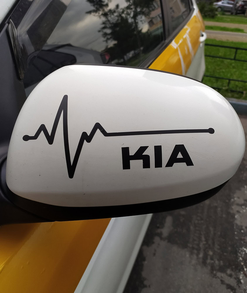 Наклейка изготовлена на самоклеящейся виниловой пленке ПВХ Oracal. Дизайн включает название марки Kia и пульсирующую линию. Устойчива к погоде, ультрафиолету и мойке высокого давления. Легко снимается без следов.