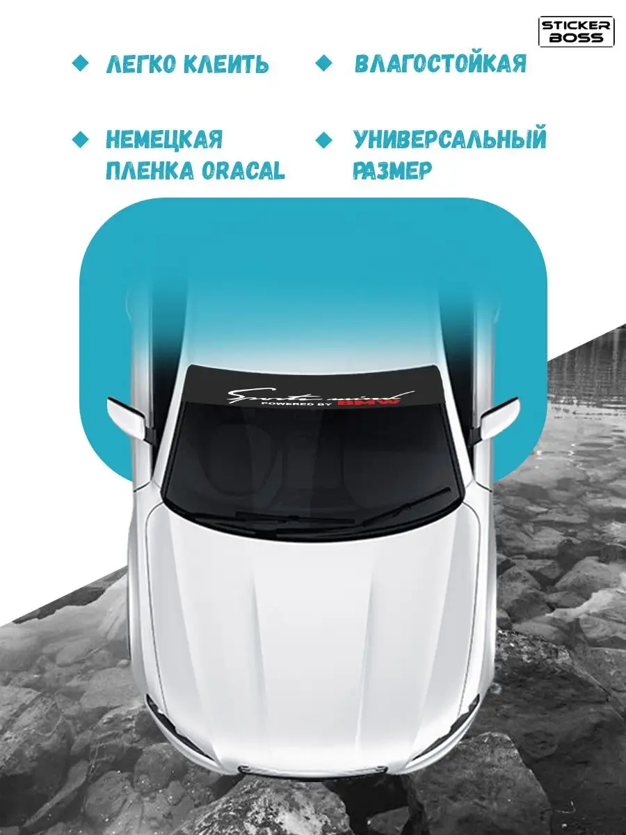 Солнцезащитная наклейка Stickerboss для лобового стекла — практичный и стильный аксессуар, который снижает дискомфорт от яркого света и поддерживает чёткое восприятие дороги. Наклейка выполнена из самоклеящейся виниловой пленки ПВХ Oracal и обладает устойчивостью к ультрафиолетовому излучению, благодаря чему цвет сохраняется дольше.