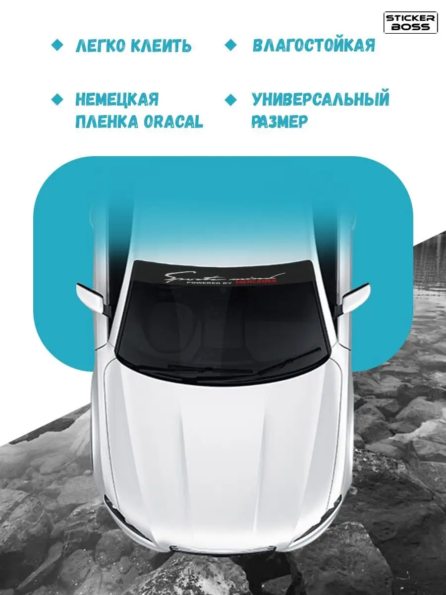 Стикеры Stickerboss для автомобиля сочетают стиль и практичность. Солнцезащитная полоса для лобового стекла Mercedes SportMind обеспечивает защиту от яркого света, снижает перегрев и сохраняет цвет благодаря ультрафиолетовому покрытию. Материал легко подгоняется под форму стекла и крепится на самоклеящейся основе без складок.