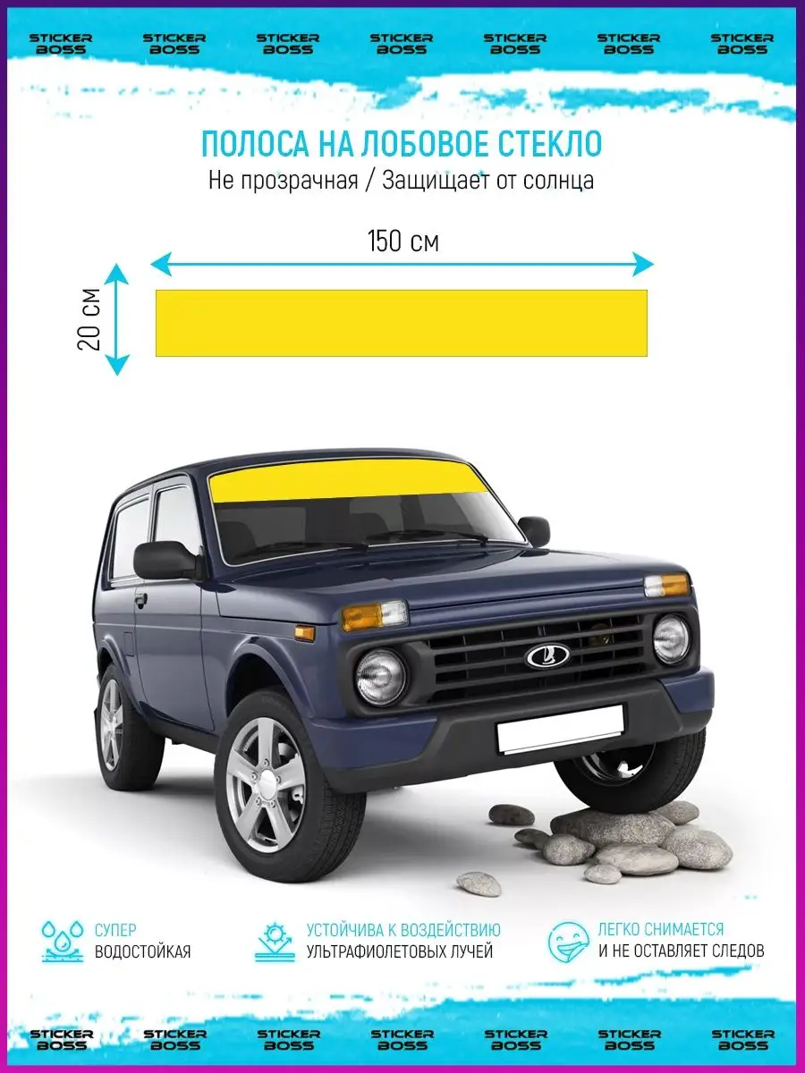 Солнцезащитная наклейка на лобовое стекло от Stickerboss сочетает стиль и функциональность, позволяя снизить раздражение от яркого света и улучшить комфорт за рулем. Полоса изготовлена из самоклеящейся матовой виниловой пленки ПВХ Oracal в желтом цвете и рассчитана на лобовое стекло автомобиля.