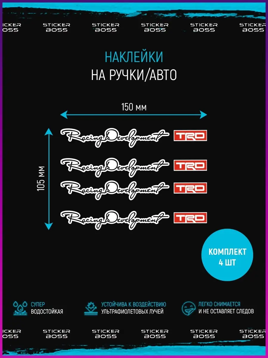 Эти эксклюзивные наклейки на дверные ручки автомобиля с надписью Racing Development TRD являются отличным способом добавить спортивный акцент к вашему транспортному средству