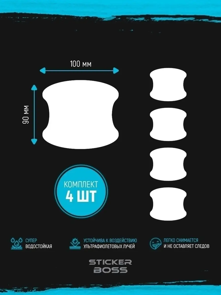 Эти наклейки на авто защитные под дверные ручки пороги служат для защиты поверхностей кузова от царапин и потертостей, а также для декоративного тюнинга. Изготовлены на самоклеящейся виниловой пленке ПВХ Oracal, которая обеспечивает надежное прилипание к поверхности, стойкость к мытью, пыли и агрессивным погодным условиям. Цвет изделия — прозрачный, что позволяет сохранить дизайн автомобиля. При желании легко снимаются, не оставляя следов.