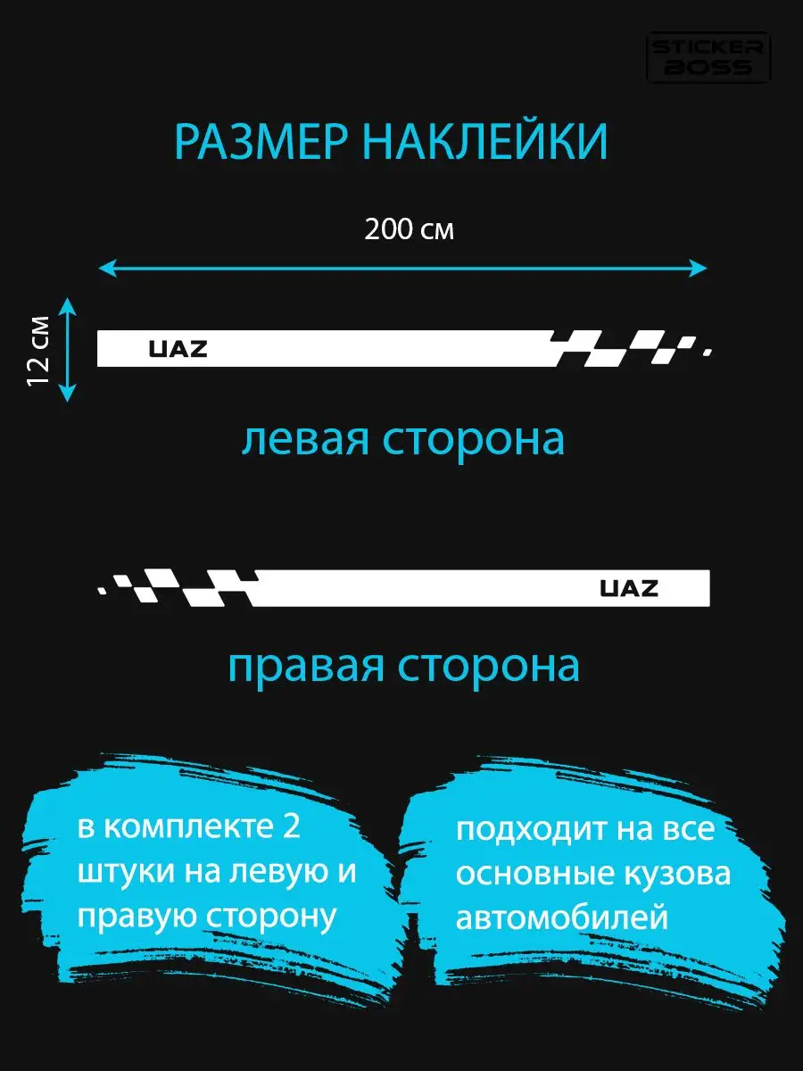 | Модель | стикер автомобильный, на борта, на кузов |