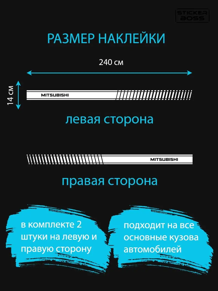 Наклейки Stickerboss на борта и кузов автомобиля представляют собой стильное решение для тюнинга и декора. Наклейка выполнена из самоклеющейся виниловой пленки ПВХ Oracal, рассчитана на долговременную службу и стойкая к внешним воздействиям. Дизайн выполнен в виде полос, которые придают автомобилю динамичный и спортивный вид. Полосы могут быть выполнены в различной цветовой гамме, что позволяет выбрать оптимальный вариант под цвет кузова. В комплект входит две наклейки.