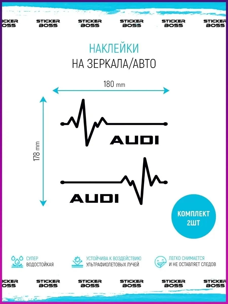 Наклейки на зеркало AUDI от Stickerboss позволяют придать автомобилю индивидуальность и выразительный стиль без дорогостоящих тюнингов. Изготовлены из прочной самоклеящейся виниловой пленки ПВХ Oracal и рассчитаны на долговременную службу в российских условиях. В комплект входят две наклейки черного цвета, которые легко наносятся на зеркало и легко снимаются без повреждений поверхности.