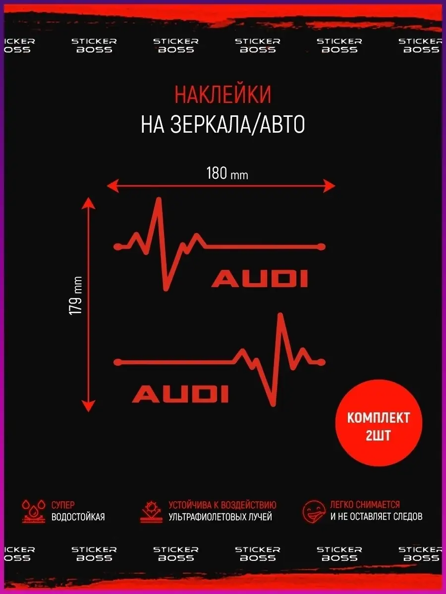 Наклейки предназначены для внешних зеркал заднего вида. Подходят для большинства автомобилей, в том числе Audi, и легко наносятся на чистую, сухую поверхность.