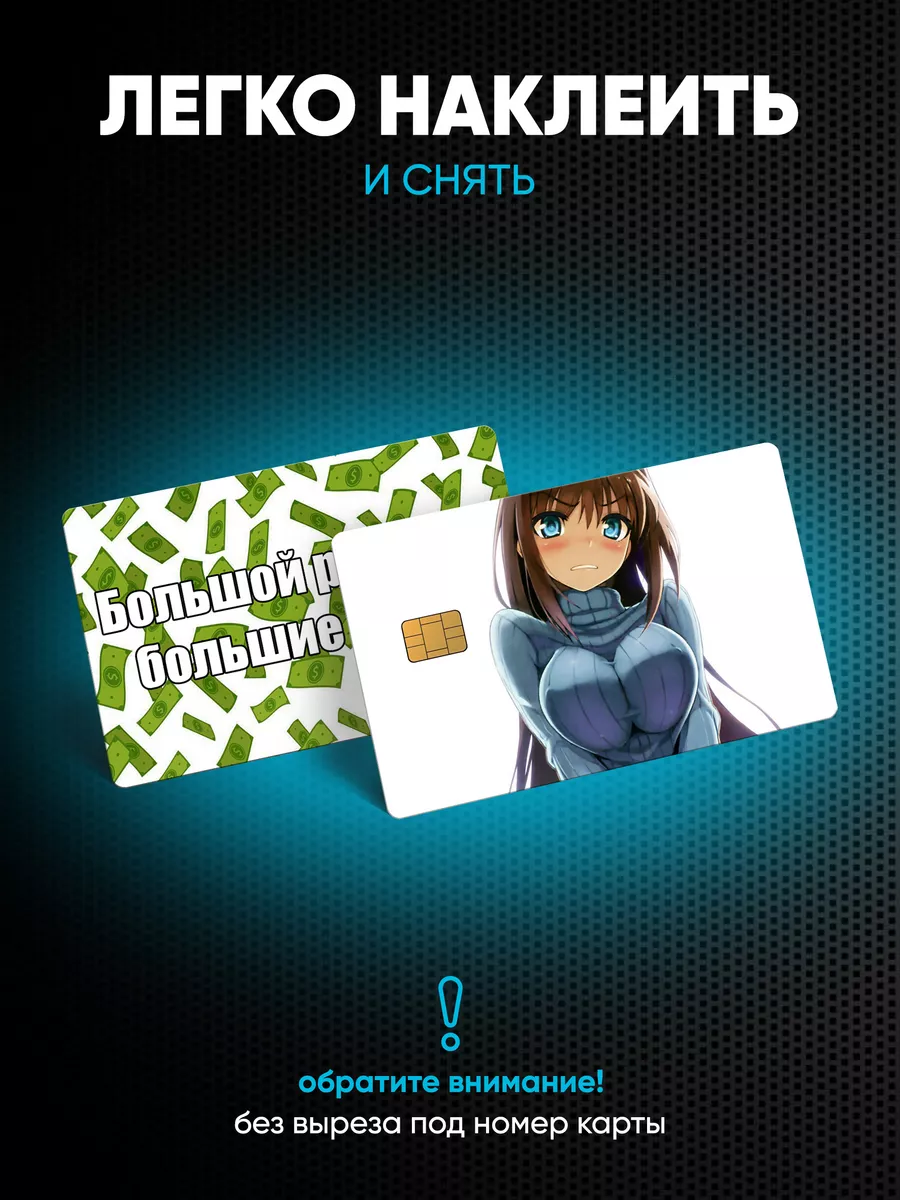Представляем вашему вниманию уникальный комплект наклеек для обеих сторон банковской карты, выполненный в стиле завораживающего аниме, который не только защитит ваш платёжный инструмент, но и придаст ему неповторимый внешний вид. С ними карта будет защищена от царапин, повреждений, износа и будет работать со всеми банкоматами и платежными терминалами по бесконтактному способу. Обратите внимание, что на стикере на лицевую часть сделана прорезь под чип. Они изготовлены из прочного, высококачественного винила, который гарантирует долговечность и яркость изображения в течение длительного времени. Изображение тщательно подобрано среди самых популярных мотивов аниме, что несомненно осветит день любого поклонника японских анимационных шедевров, а на наклейке на заднюю часть карты расположены остроумные шуточные надписи, в лучших традициях Stickerboss. Благодаря специально разработанному клеевому слою, они легко наносятся и удаляются без остатка клея, позволяя вам изменять дизайн в любой момент и по вашему усмотрению. Это идеальный способ лично выразиться и выделиться среди остальных, демонстрируя вашу любовь к аниме и добавляя нотку стиля вашим повседневным финансовым операциям