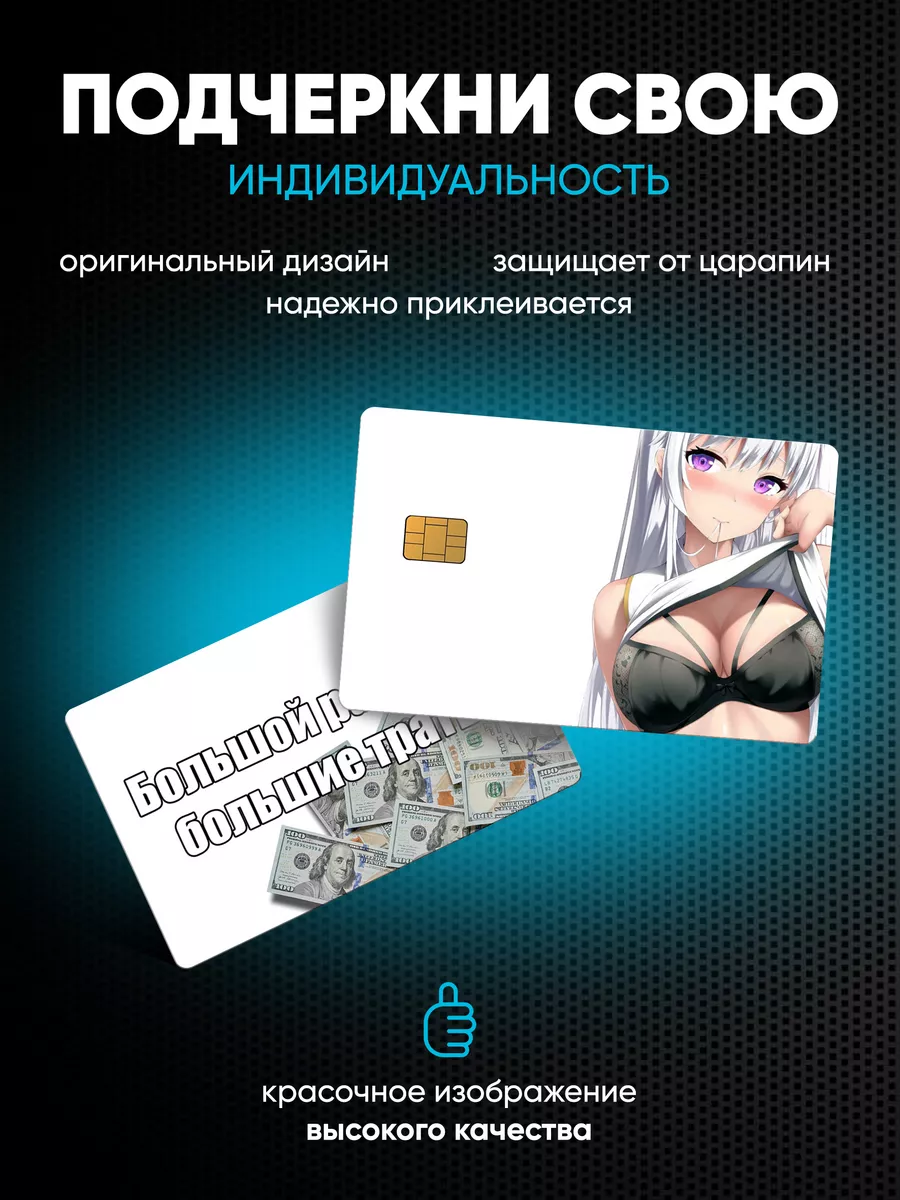 Представляем вашему вниманию уникальный комплект наклеек для обеих сторон банковской карты, выполненный в стиле завораживающего аниме, который не только защитит ваш платёжный инструмент, но и придаст ему неповторимый внешний вид. С ними карта будет защищена от царапин, повреждений, износа и будет работать со всеми банкоматами и платежными терминалами по бесконтактному способу. Обратите внимание, что на стикере на лицевую часть сделана прорезь под чип. Они изготовлены из прочного, высококачественного винила, который гарантирует долговечность и яркость изображения в течение длительного времени. Изображение тщательно подобрано среди самых популярных мотивов аниме, что несомненно осветит день любого поклонника японских анимационных шедевров, а на наклейке на заднюю часть карты расположены остроумные шуточные надписи, в лучших традициях Stickerboss. Благодаря специально разработанному клеевому слою, они легко наносятся и удаляются без остатка клея, позволяя вам изменять дизайн в любой момент и по вашему усмотрению. Это идеальный способ лично выразиться и выделиться среди остальных, демонстрируя вашу любовь к аниме и добавляя нотку стиля вашим повседневным финансовым операциям