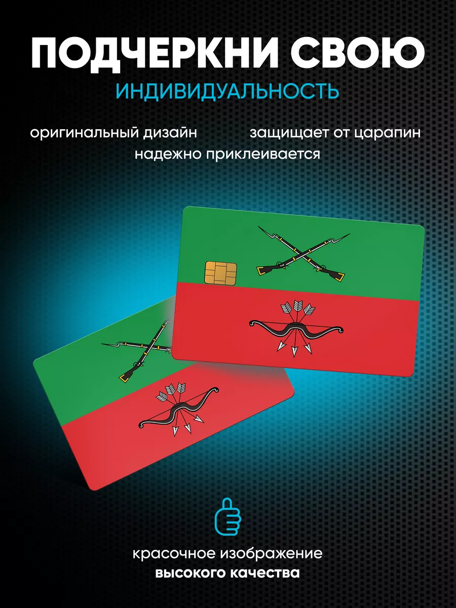 Представляем вашему вниманию уникальный комплект наклеек для обеих сторон банковской карты, выполненный в стиле национальных флагов и гербов, который не только защитит ваш платёжный инструмент, но и придаст ему неповторимый внешний вид