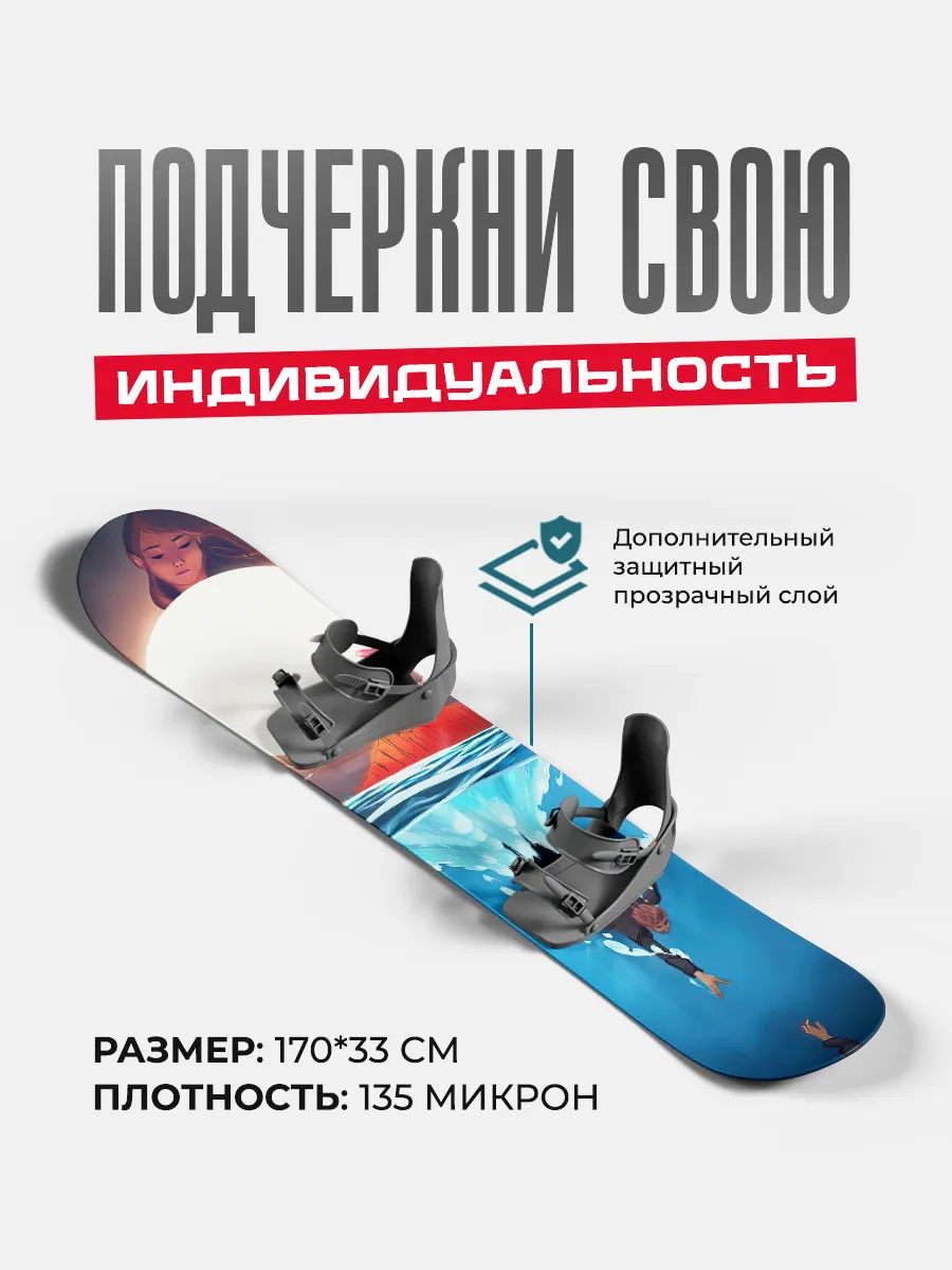 Эта наклейка из винила создана для сноуборда и позволяет выразить стиль и индивидуальность. Размер 170x33 см обеспечивает заметный акцент на доске и совместима с другими принтами коллекции. В линейке встречаются пейзажи, мотивы природы, аниме иллюстрации и абстракции, что позволяет выбрать вариант на любой вкус.