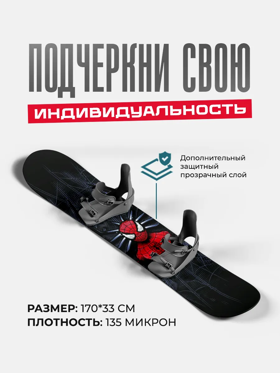 Яркая виниловая наклейка на сноуборд размером 170х33 см с изображением Человека-паука помогает выразить индивидуальность и стиль на склонах. Материал обеспечивает долговечность и стойкость к внешним воздействиям, а клеевой слой надежно держится на поверхности.