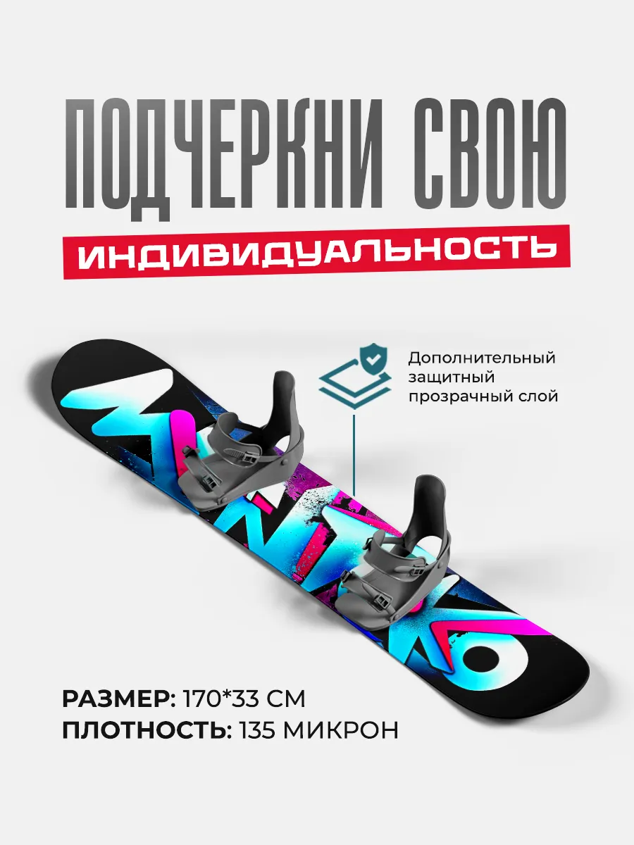 Представляем вам уникальную серию виниловых наклеек для сноубордов, размером 170х33 см, созданную для того, чтобы подчеркнуть вашу индивидуальность и стиль на заснеженных склонах