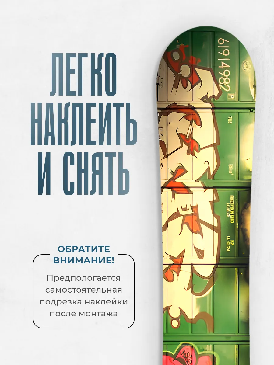 Уникальная виниловая наклейка на сноуборд размером 170x33 см из коллекции Stickerboss позволяет выразить индивидуальность и защитить поверхность борда от влаги и мелких царапин. Дизайн граффити вагон добавляет динамичный стиль активного отдыха.