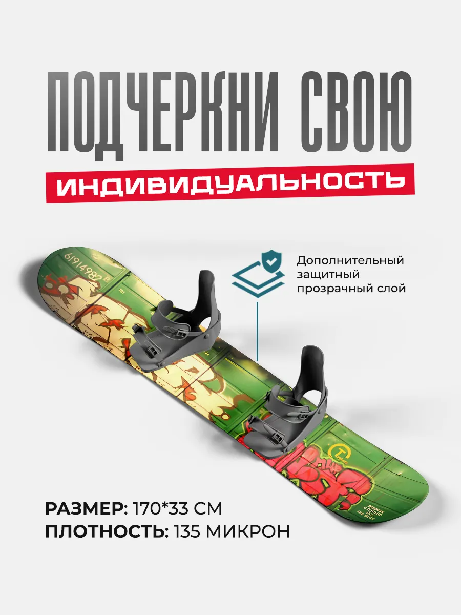 Представляем вам уникальную серию виниловых наклеек для сноубордов, размером 170х33 см, созданную для того, чтобы подчеркнуть вашу индивидуальность и стиль на заснеженных склонах
