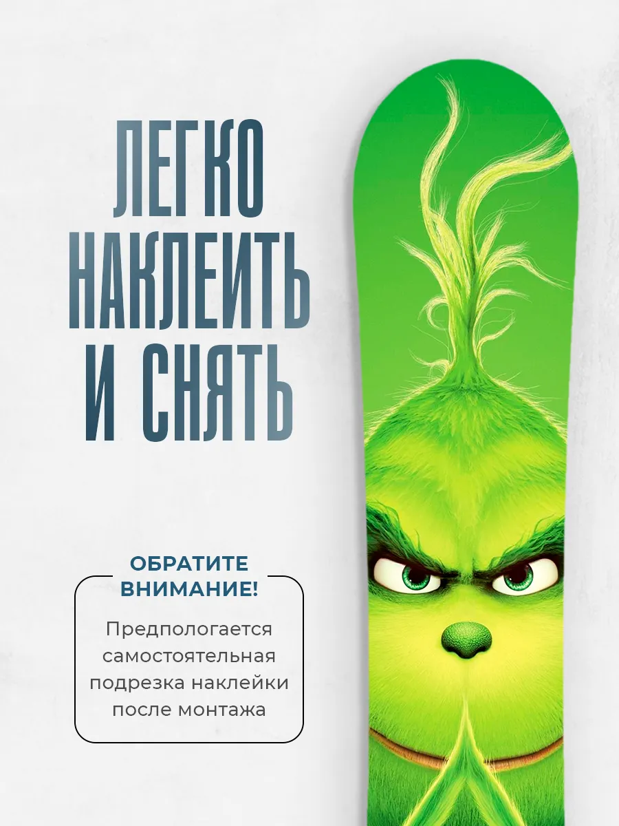 Наклейка Stickerboss размером 170х33 см для сноуборда обеспечивает выразительный стиль и защиту поверхности. Это виниловая наклейка, выполненная в России, и рассчитанная на долговременное использование в условиях активного зимнего отдыха. Дизайн Гринч делает борд заметным и оригинальным, сочетая креативность и спортивную тематику. В описании указана высокая стойкость к внешним воздействиям, что обеспечивает сохранение цвета и формы при холодной погоде и длительных поездках.