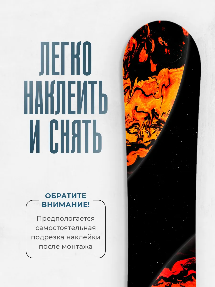Подходит для сноубордов. Наклейка предназначена для внешнего применения на поверхности борда, чтобы подчеркнуть стиль и настроение, не мешая управляемости и эксплуатации снаряда.