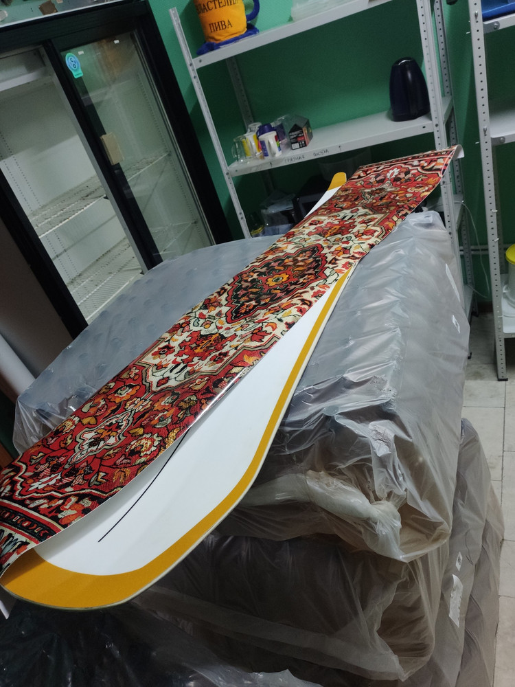 Подходит для наклеивания на сноуборд и другие гладкие поверхности. Перед нанесением поверхность следует очистить и высушить.