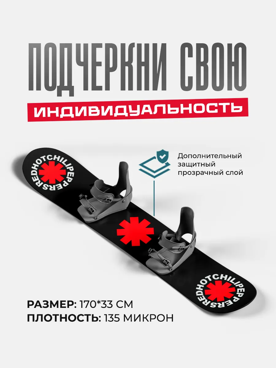 Наклейки из устойчивого винила позволяют персонализировать ваш сноуборд и защитить поверхность от износа без сложного монтажа. Размер 170х33 см обеспечивает широкое покрытие и заметный эффект на трассе.