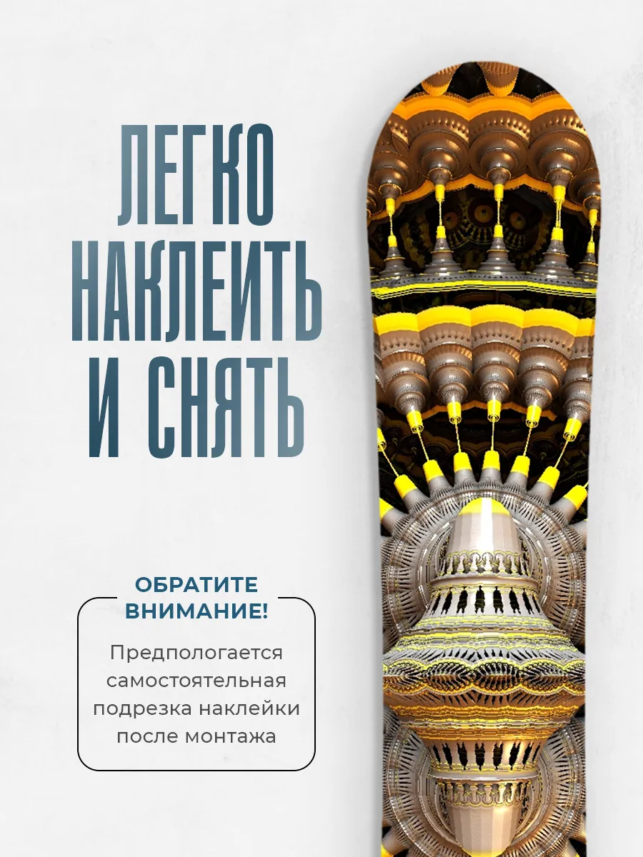 Разрешено нанесение на поверхность сноуборда для внешней эстетики и защиты. Примерьте узор на доске до наклеивания, чтобы выбрать оптимальное положение.