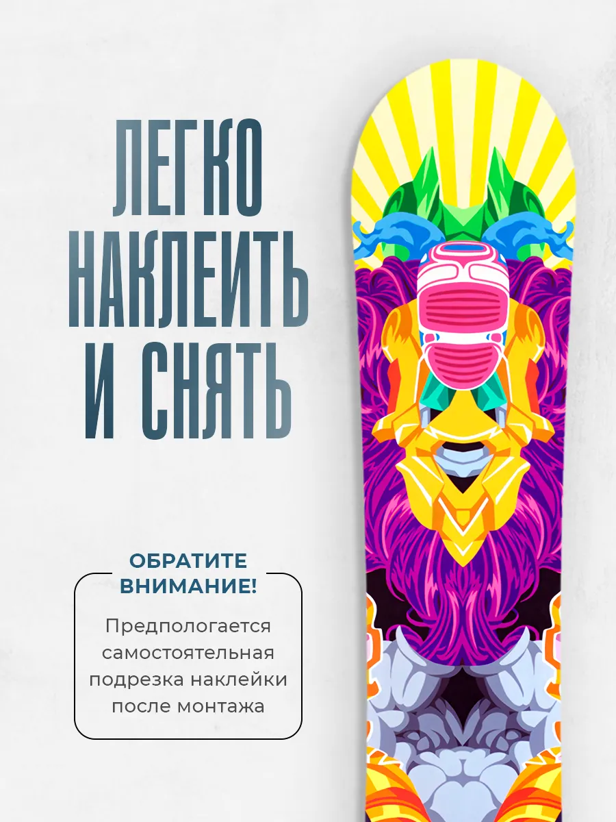 \nНаклейка предназначена для нанесения на поверхность сноуборда и может использоваться для выражения индивидуального стиля. Коллекция позволяет подобрать принт под настроение и увлечения, будь то природа, персонажи или абстракция.