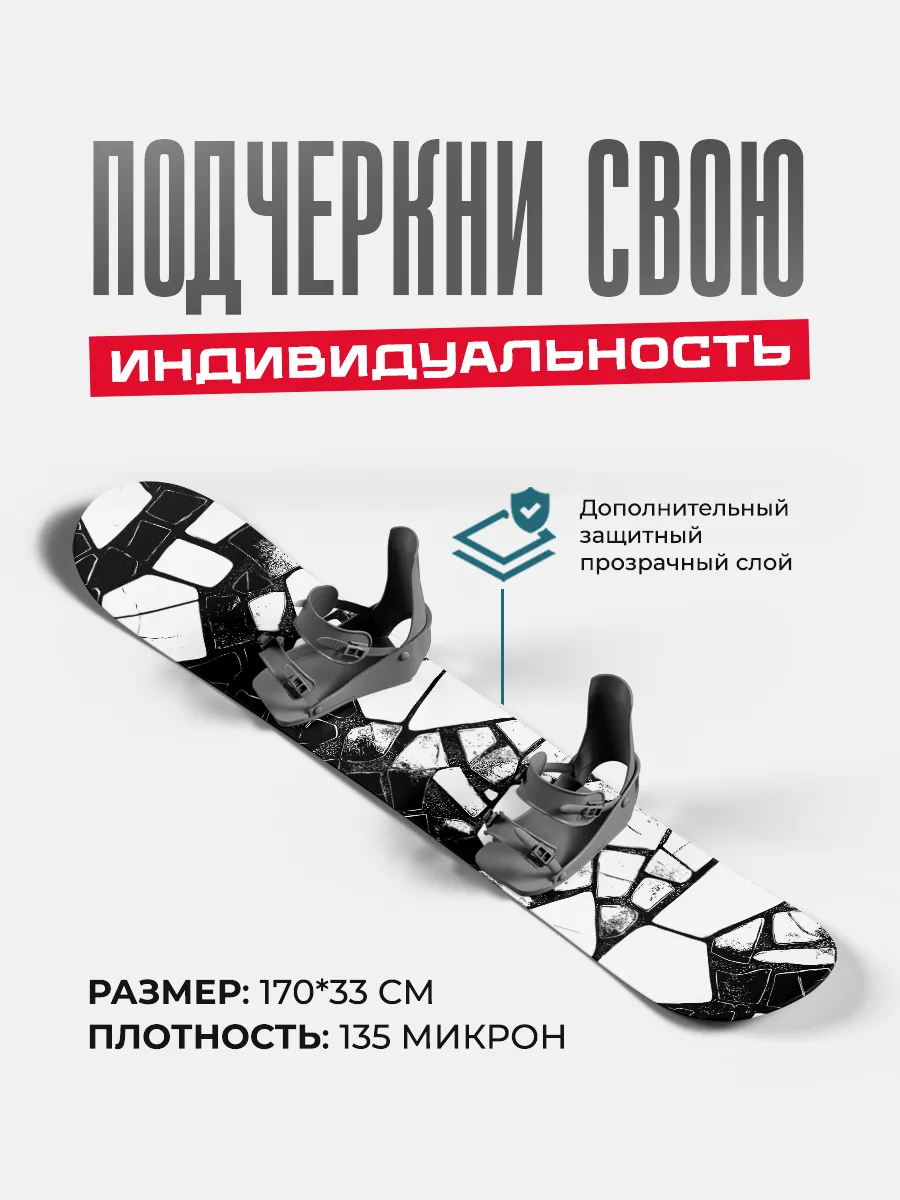 Представляем вам уникальную серию виниловых наклеек для сноубордов, размером 170х33 см, созданную для того, чтобы подчеркнуть вашу индивидуальность и стиль на заснеженных склонах