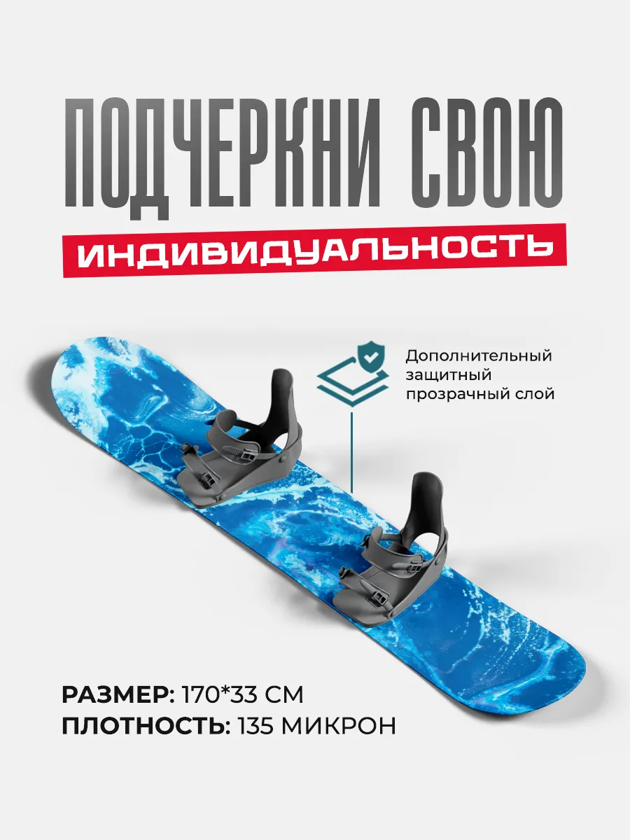 Виниловая наклейка на сноуборд размером 170×33 см позволяет выразить индивидуальность через графику волн и стиль снега. Наклейка изготовлена из прочного винила, стойкого к влаге и солнечному свету, что обеспечивает длительный срок службы на склоне. Комплектация: 1 наклейка.