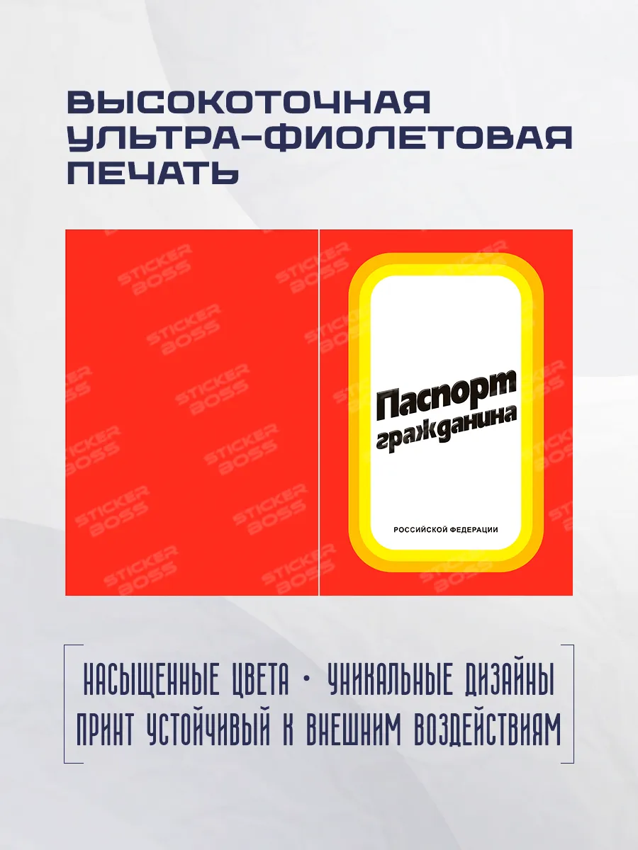 Представляем стильную обложку на паспорт из эко-кожи, идеально подходящую для тех, кто ценит качество и прикольный дизайн. Яркие принты в лучших традициях Stickerboss делают каждый чехол уникальным и незабываемым аксессуаром для ваших документов. Наша коллекция предлагает множество оригинальных, шуточных, патриотических рисунков, которые подчеркнут вашу индивидуальность и добавят яркости любому образу. Надежная защита для вашего паспорта и стильный акцент — это то, что предлагает наша линейка обложек. Независимо от вашего стиля, у нас найдется подходящий вариант, который станет отличным дополнением к вашим повседневным аксессуарам. В нашем ассортименте можно подобрать обложки как мужские, так и женские, это будет отличный подарок на любой повод.
