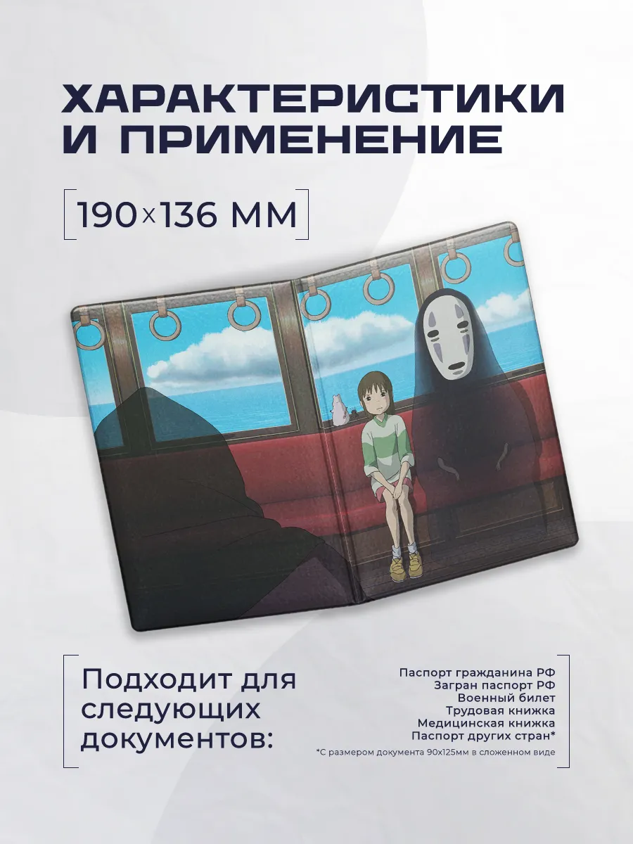 Стильная обложка для паспорта из эко-кожи с ярким принтом аниме унесенные призраками от Stickerboss обеспечивает защиту важных документов и персональный стиль в повседневной жизни. Лаконичный дизайн и практичность сочетаются в этой модели, которая легко впишется в повседневный образ и станет заметным акцентом вашей личности.