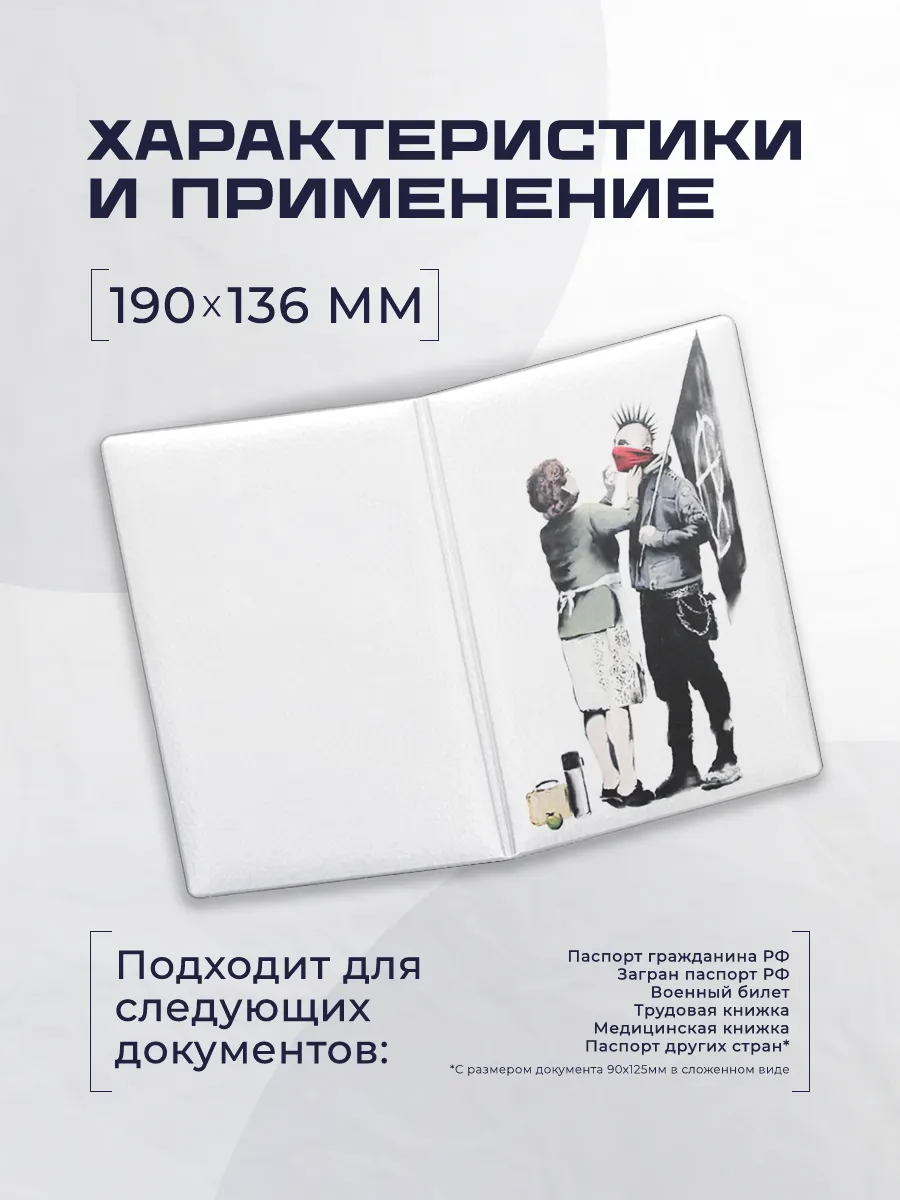 Обложка рассчитана на паспорт и служит защитным и декоративным аксессуаром в повседневной жизни. Она подходит как стильный аксессуар для мужчин и женщин.