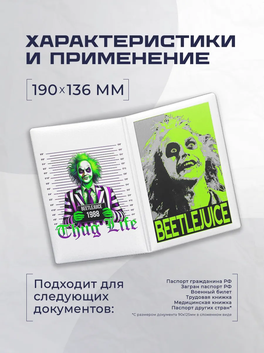 Битлджус 576 — стильная обложка для паспорта из искусственной кожи. Уникальный принт и практичность в одном аксессуаре делают эту модель заметной частью вашего образа. Обложка защищает документы и имеет два кармана для удобного размещения банкнот, документов и проездного.