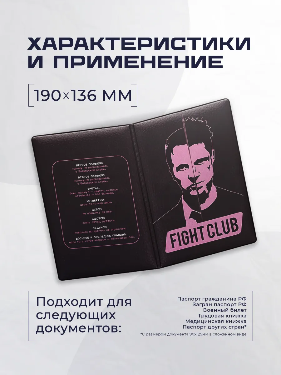 Стильная обложка-чехол для паспорта из искусственной кожи и экокожи с принтом Бойцовский клуб от Stickerboss сочетает защиту документов с оригинальным дизайном. Обложка рассчитана на паспорт и документы, имеет два кармана и бесшовный внешний вид, что обеспечивает удобство повседневного использования.