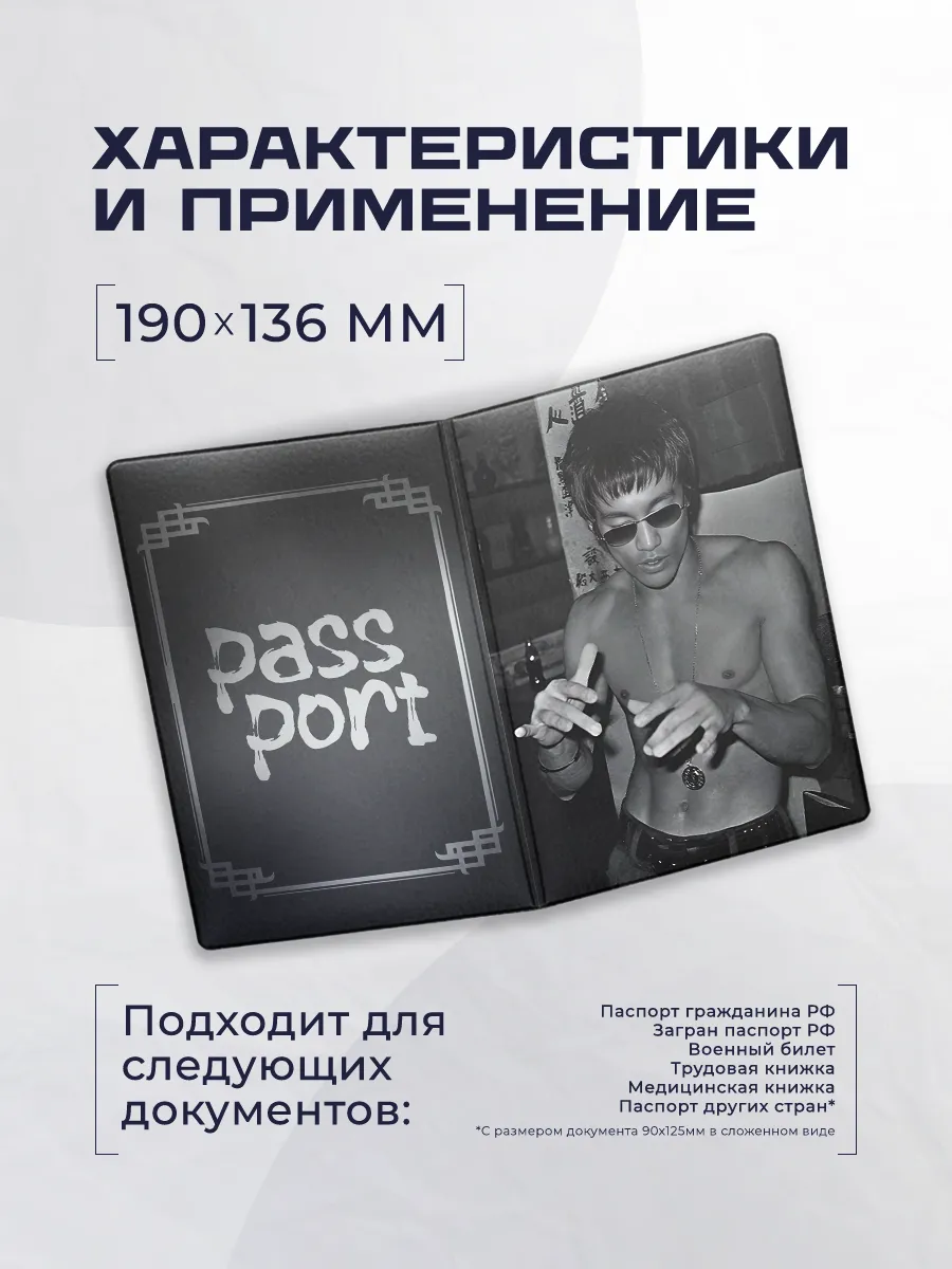 Обложка чехол для паспорта брюс ли из эко-кожи от Stickerboss сочетает стиль и защиту документов. Яркий принт брюса ли делает каждый экземпляр индивидуальным, а прочный материал обеспечивает долговечность повседневного использования. Обложка рассчитана на два кармана и не имеет застежки, что упрощает доступ к паспортным данным. Это надежный аксессуар для тех, кто хочет подчеркнуть индивидуальность и организованность.