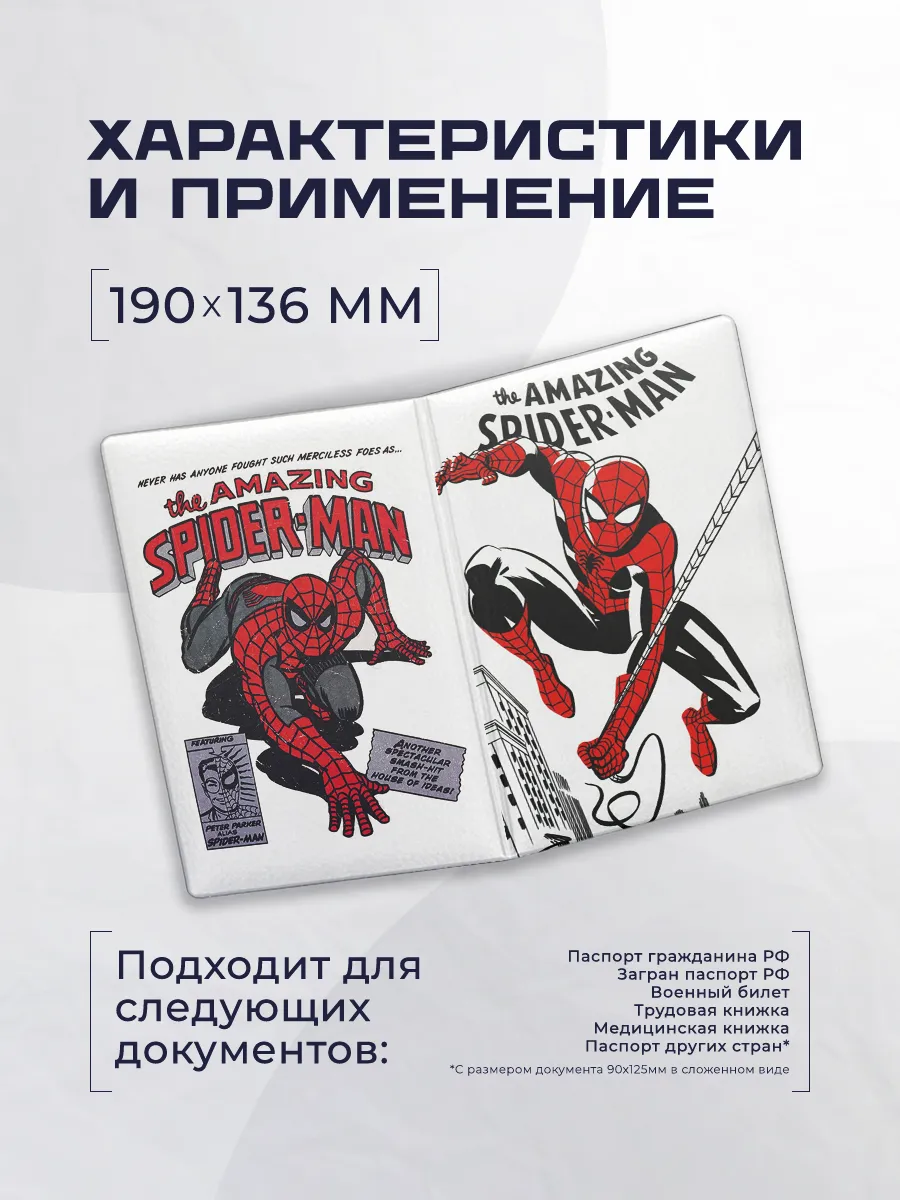 Обложка предназначена для защиты паспорта и сопутствующих документов в повседневной эксплуатации и путешествиях. Дизайн с изображением spider-man позволяет подчеркнуть индивидуальность владельца.