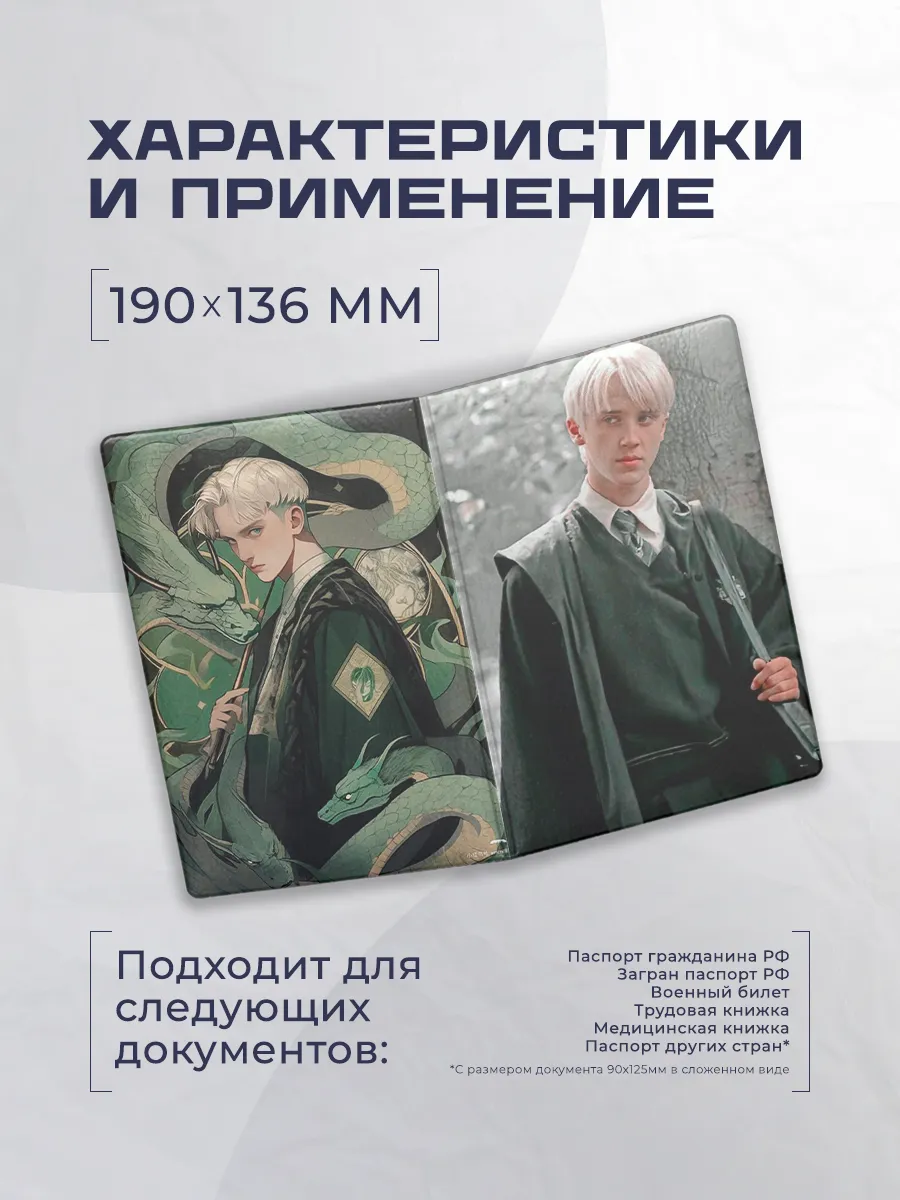 Обложка-чехол для паспорта Stickerboss выполнена из искусственной кожи и экокожи и создана для защиты документов и подчёркивания индивидуального стиля. Дизайн с персонажем Драко Малфой делает аксессуар уникальным и заметным в повседневной жизни.