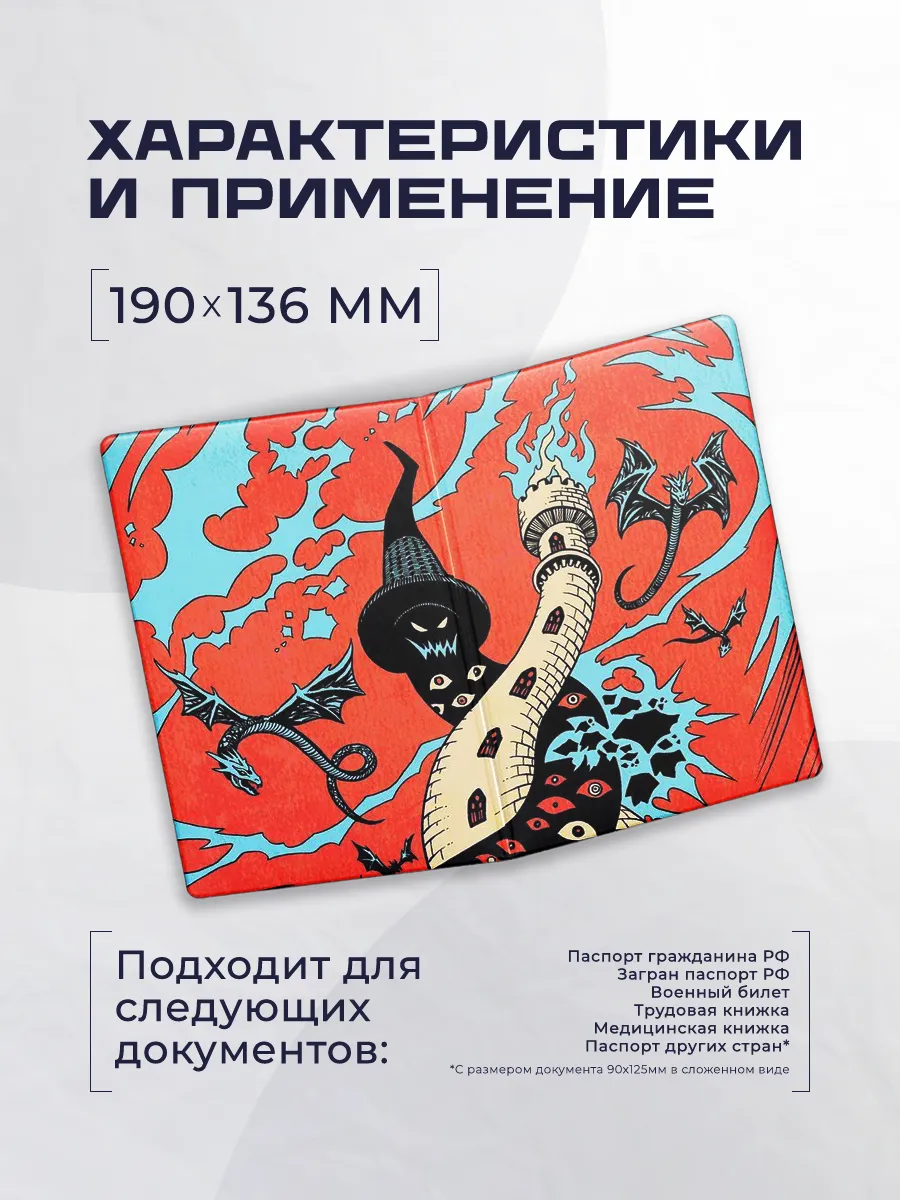 Стильная обложка на паспорт из искусственной кожи с принтом драконы обеспечивает защиту и индивидуальный стиль. Лёгкая в уходе и практичная, она сохраняет внешний вид документов в целости.
